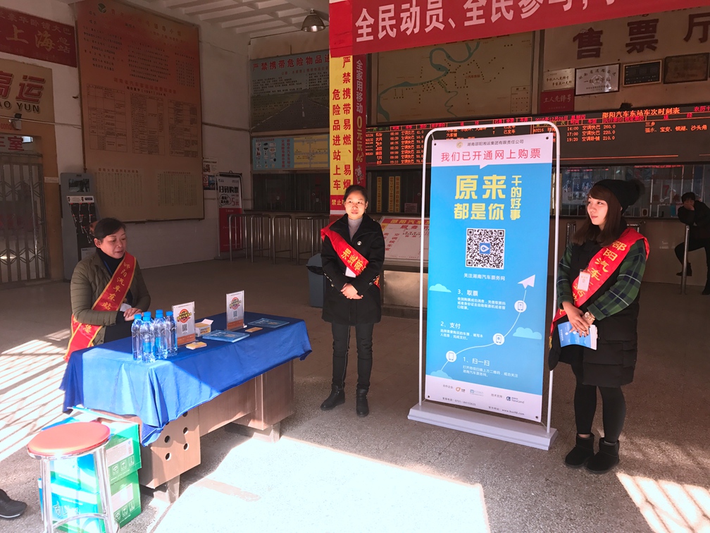 第一輪推廣單位為:邵陽汽車東站、邵陽汽車南站、邵陽汽車北站、隆回汽車東站、隆回汽車西站。12月下旬邵陽湘運旗下所有車站全部進行推廣。以下為8日推廣活動圖片。